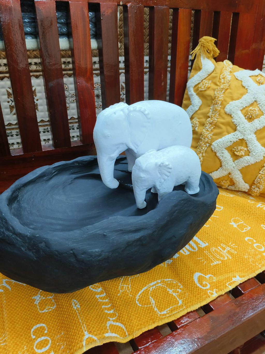 The recieved product lacks the finishing and clarity of the items shown in the website. The elephants have no distinguishable features and just resemble something a 5 year old would craft out of play dough.